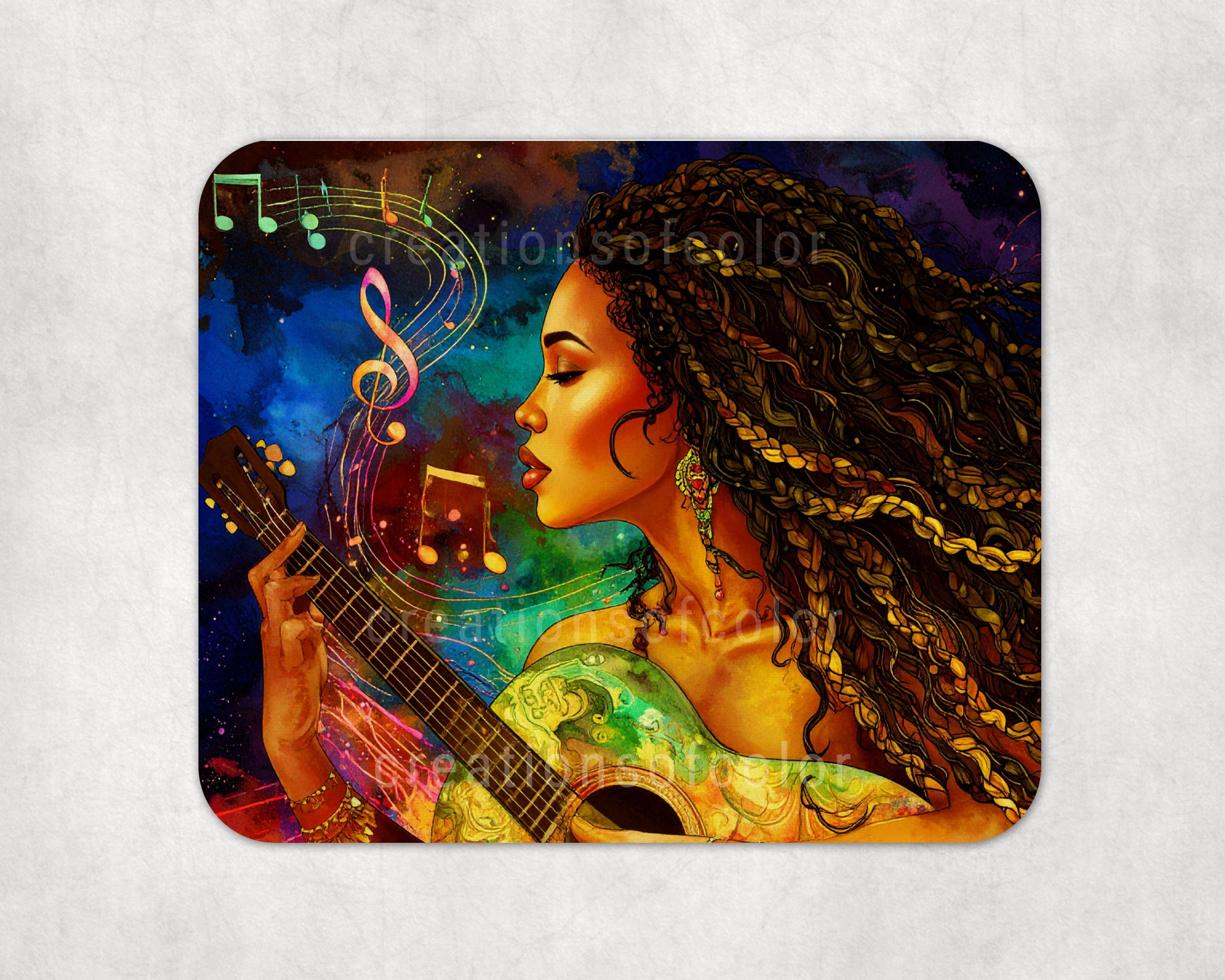 Decorate your desktop with an art mousepad and express yourself without saying a word. Mousepad is 8"x9"x1/4." Polyester top (soft top doesn't crack) with non-slip neoprene rubber backing. Excellent surface for both optical and roller mouse devices.