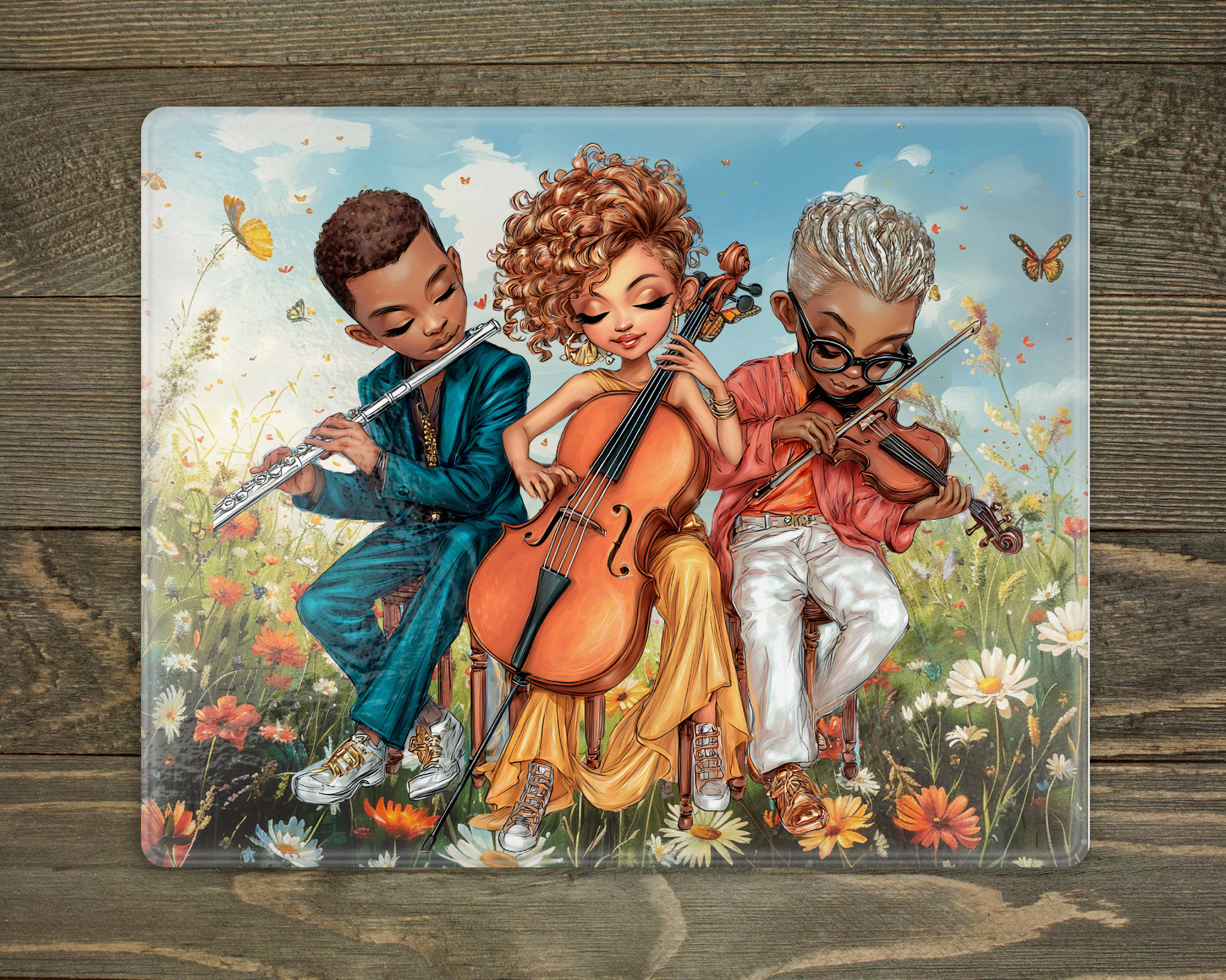 Spice up your kitchen with one of our beautiful cutting boards! Cutting boards are perfect for home chef's and restaurant owners alike. This functional, sanitary, and heat resistant glass cutting surface is ideal for slicing, dicing, and mincing in the kitchen. Tempered and coated it has a grain textured surface. Size 11.1” x 7.9” x .15”