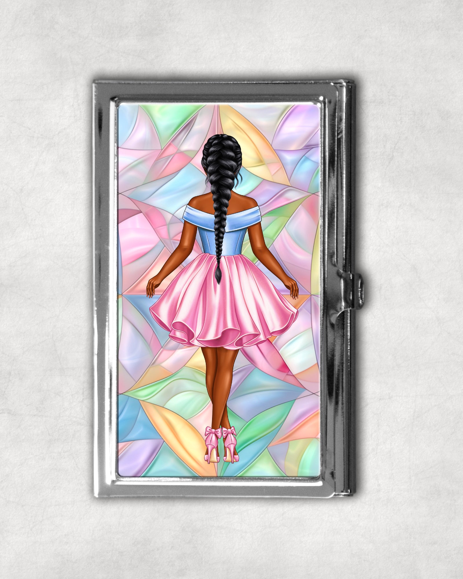 Make a bold and beautiful first impression with our Afrocentric themed business card holders. Featuring a stunning illustrations of ethnic culture. This holder is a true celebration of grace and individuality. The sleek metal case adds a touch of professionalism while showcasing your vibrant, unapologetic style.