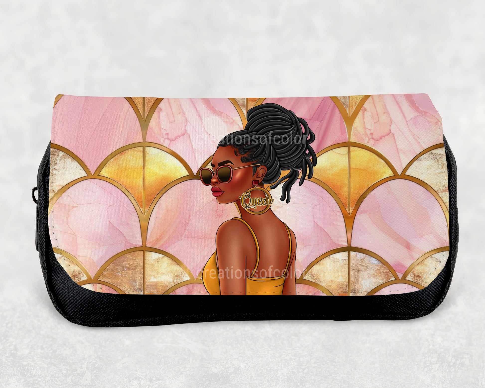 Carry a piece of culture wherever you go. This Afrocentric cosmetic bag blends functionality with heritage-inspired design. Crafted from durable black fabric with two zippered compartments, it keeps your beauty essentials neatly organized. The standout feature is the vibrant printed flap, showcasing bold artwork inspired by African and diasporic creativity. More than just a makeup bag, it’s a reflection of pride, style, and everyday elegance. Size 8.66" W x 3.44" H x 4.3" L.
