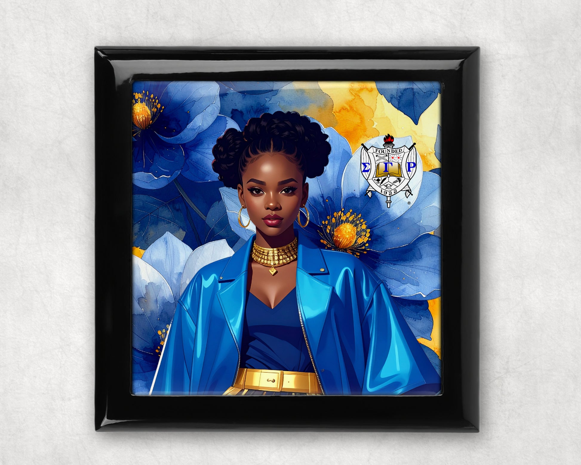 Beautiful lacquered black box with mahogany piano finish. Choose from Small Box size 5.8" x 5.8" x 2.25", or Large box size 7"x 7" x 2.5" with hinged lid and white velvet fabric lining, is the ideal elegant gift. Use for jewelry, keepsake mementos, pictures, etc.